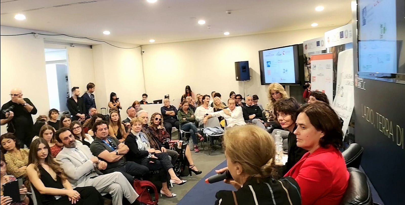 Na konferenciji su učestvovali Marčelo Foti i Adriano DeSantis, direktor i dekan Filmske škole Ćentro Sperimentale iz Rima, Marijela Trokoli iz Ministarstva za zaštitu kulturnih dobara i aktivnosti Italije, Lućijano Sovena, predsednik Filmske komisije Lacio Rim, Enriko Bufalini, direktor Istorijskog arhiva Luće, Andrea Minuz, rukovodilac master klasa sa Departmana za istoriju umetnosti i spektakla sa Univerziteta Sapijenca, Pilar Vilanueva Romero, savetnik Ambasade Kraljevine Španije.