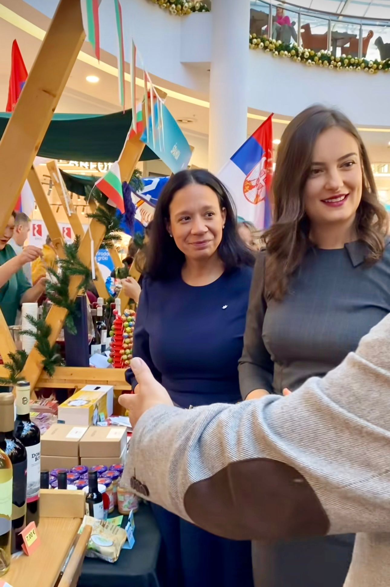 На штанду Амбасаде представљени су многобројни производи из Србије, а сви приходи од продаје донирани су за обнову школа у Гусињу и Петровцу.