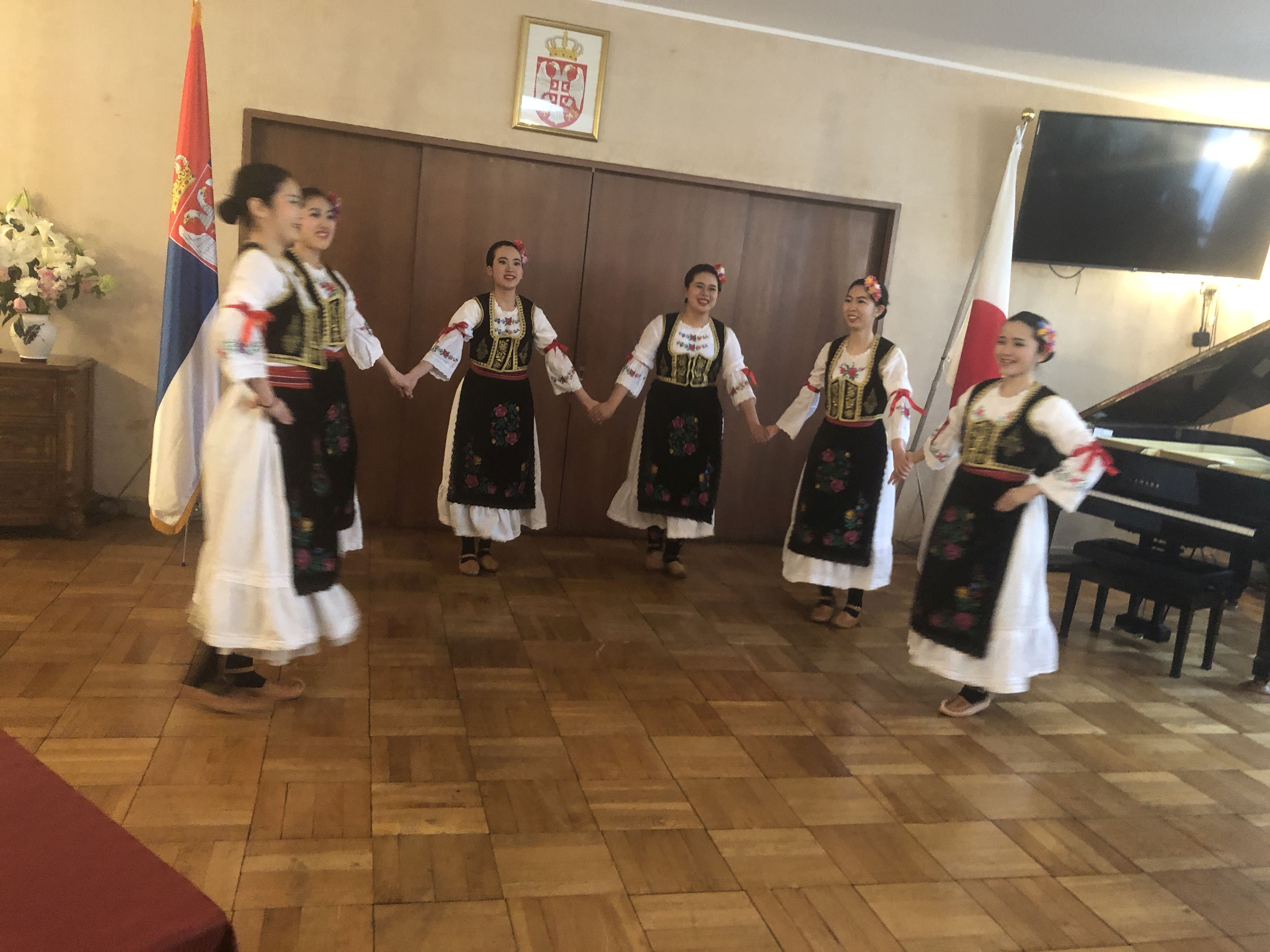 Председница јапанског огранка светског Удружења клавирских педагога Рика Фукуда на клавиру је извела химне Србије и Јапана, док су студенткиње Токијског универзитета за стране студије y народним ношњама одиграле сплет српских народних игара. Реч је о групи која већ више година успешно изводи наше народне игре, а први чланови су посетили Србију и учествовали на радионицама са КУД Бранко Цветковић управо захваљујући напорима Ецуко Цунозаки.