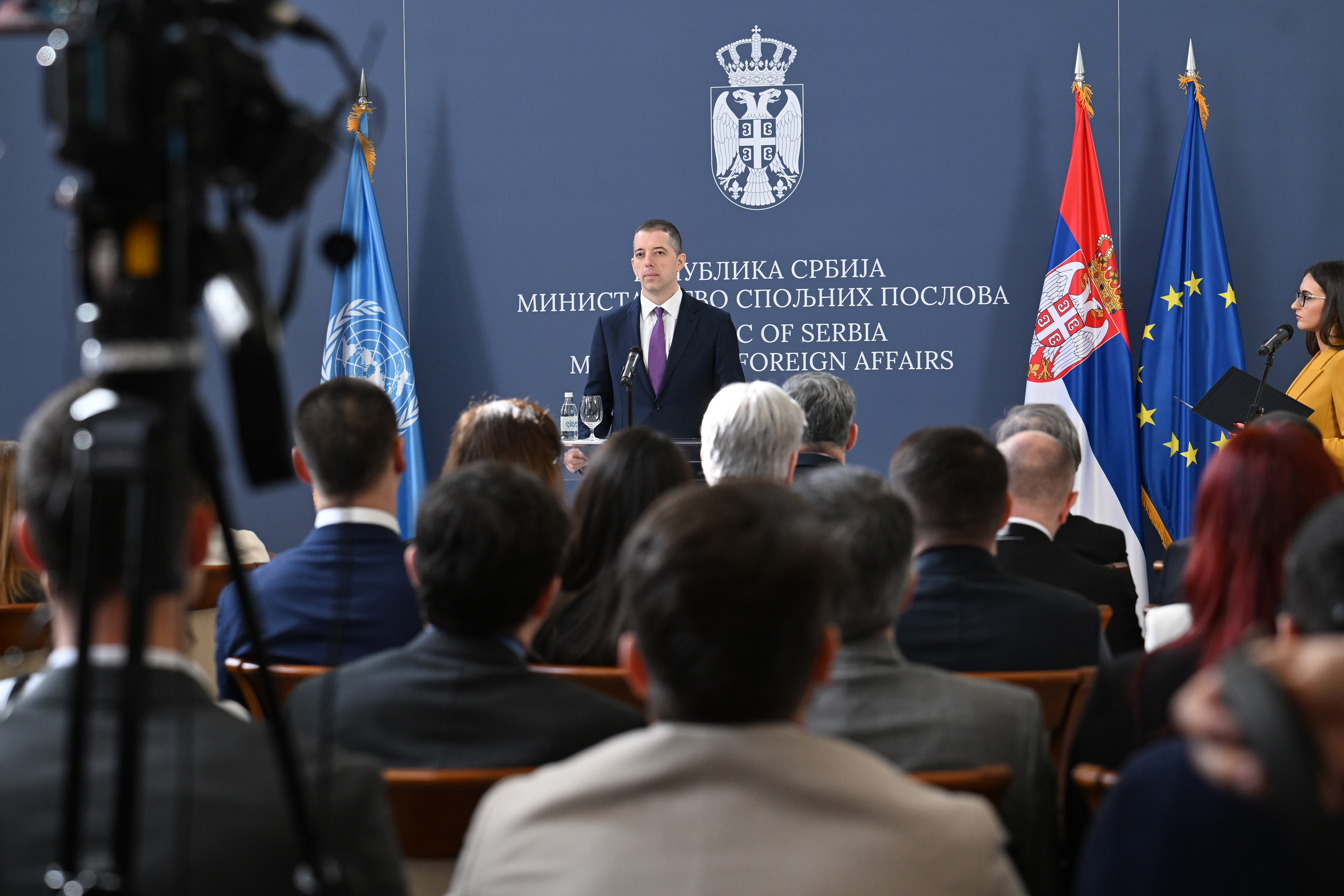 Шеф српске дипломатије је истакао да поштовање међународног права за Србију није питање тренутних околности, већ трајан и непроменљив принцип, нагласивши да документ препознаје напредак који је Србија остварила захваљујући одговорним економским политикама, јачању институција и доношењу одлука у дугорочном интересу грађана. Додао је да развој није линеаран процес и да Србију очекују бројни изазови, али да сарадњу са агенцијама и програмима УН види као важан ослонац у даљем напретку, у складу са националним приоритетима.