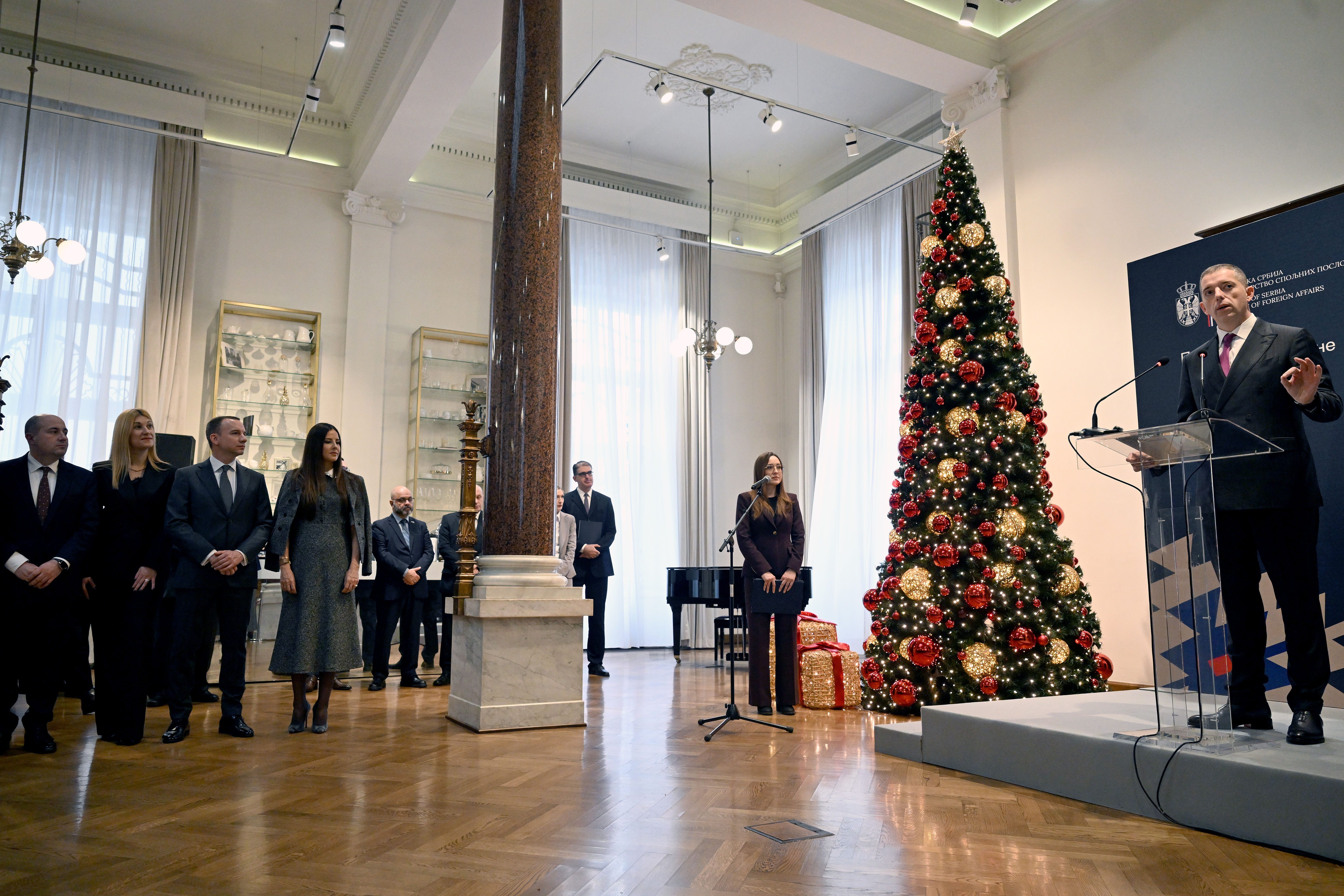 „Желимо да 2026. буде добра година за Србију. Председник Александар Вучић је званично усмерио Владу и, наравно, нас у дипломатској служби, јер веома тесно сарађујемо, да се фокусирамо на два кључна приоритета. Прво, одржавање стабилности у региону, на домаћем нивоу и свуда где можемо допринети јер стабилност је кључни предуслов за свеукупни друштвени развој Србије“, истакао је Ђурић.