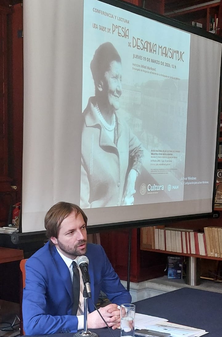 Povodom obeležavanja osamdesete godišnjice diplomatskih odnosa između Srbije i Meksika i u susret Svetskom danu poezije, u Nacionalnom muzeju kultura sveta u Meksiko Sitiju upriličeno je ,,Popodne uz poeziju Desanke Maksimovićˮ.