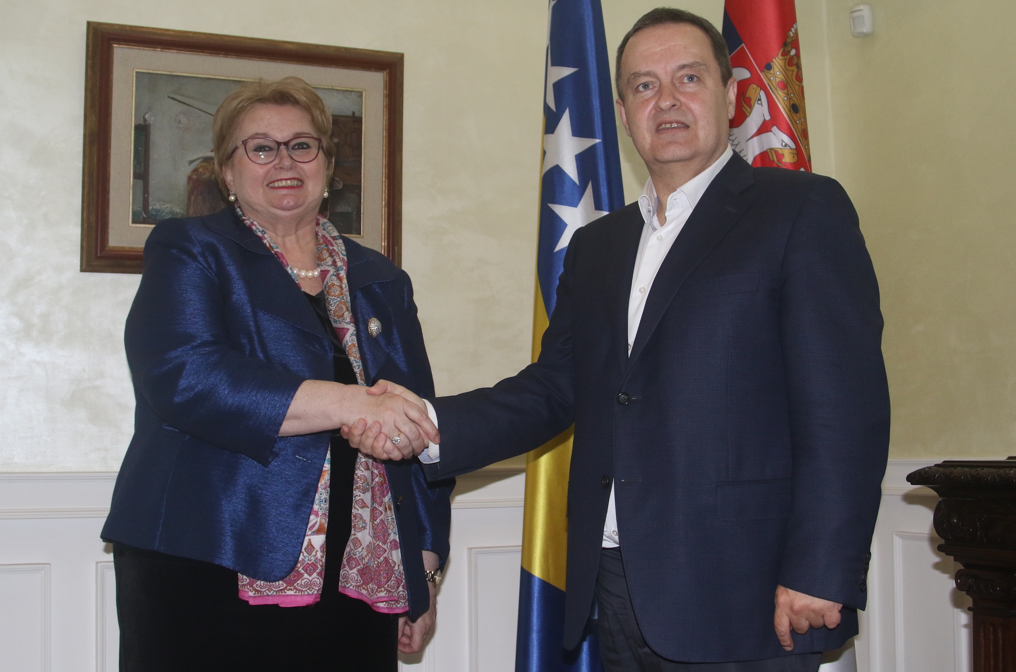 Dačić je poručio da Srbija pridaje veliku važnost odnosima sa BiH, da želi da ih razvija, da je zaintresvana za posete na svim nivoima, kao i podržava teritorijalni integritet i suverenitet BiH u skladu sa Dejtonskim sporazumom.