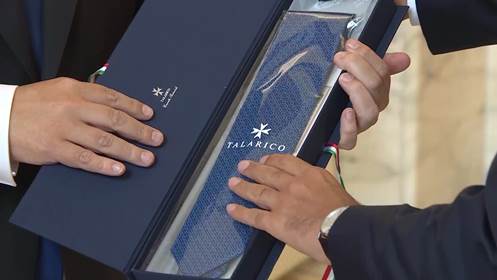 Di Majo je uzvratio Dačiću poklonivši mu tompus, kao i kravatu i maramu poznatog italijanskog brenda ''Talarico''.