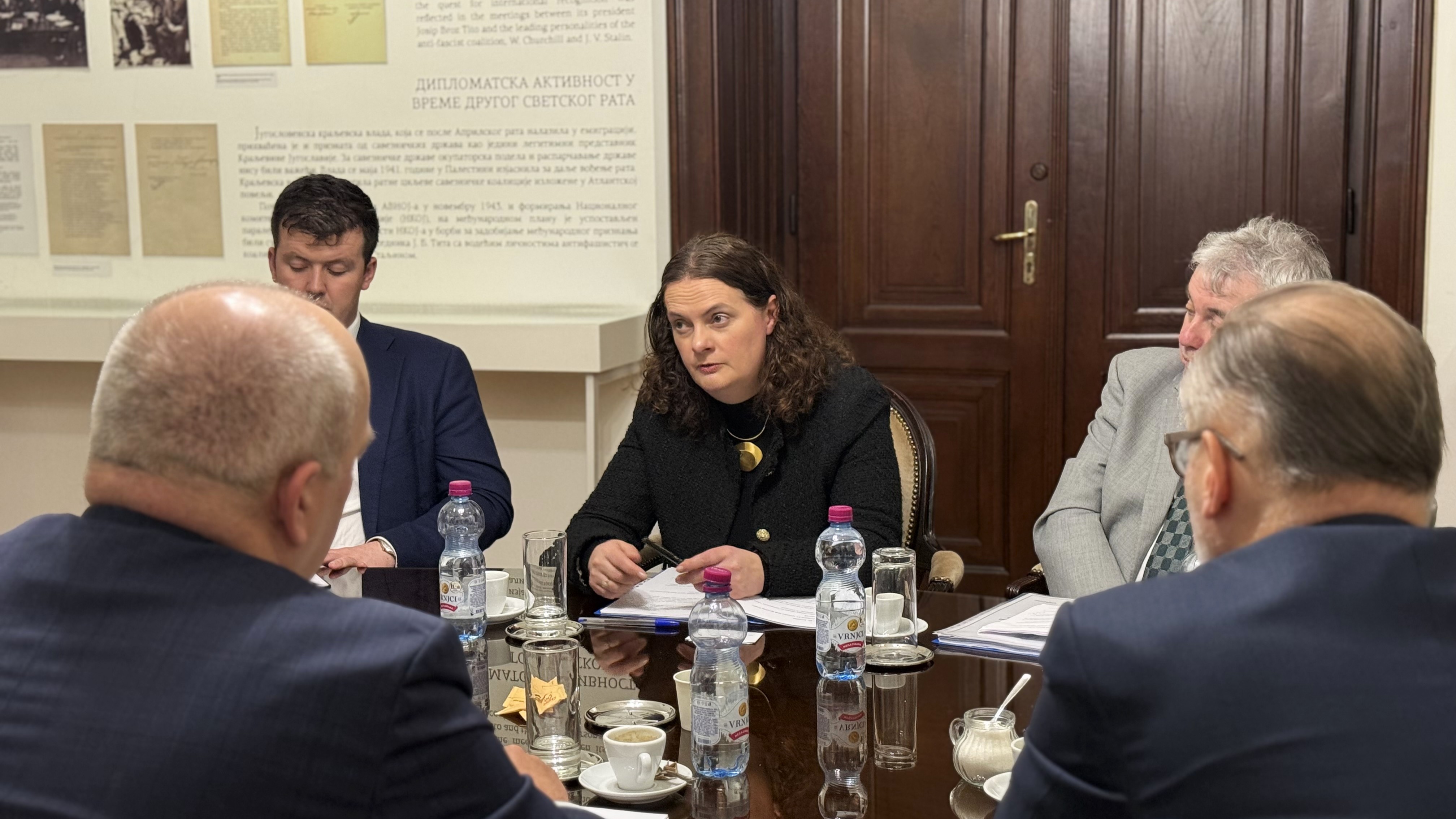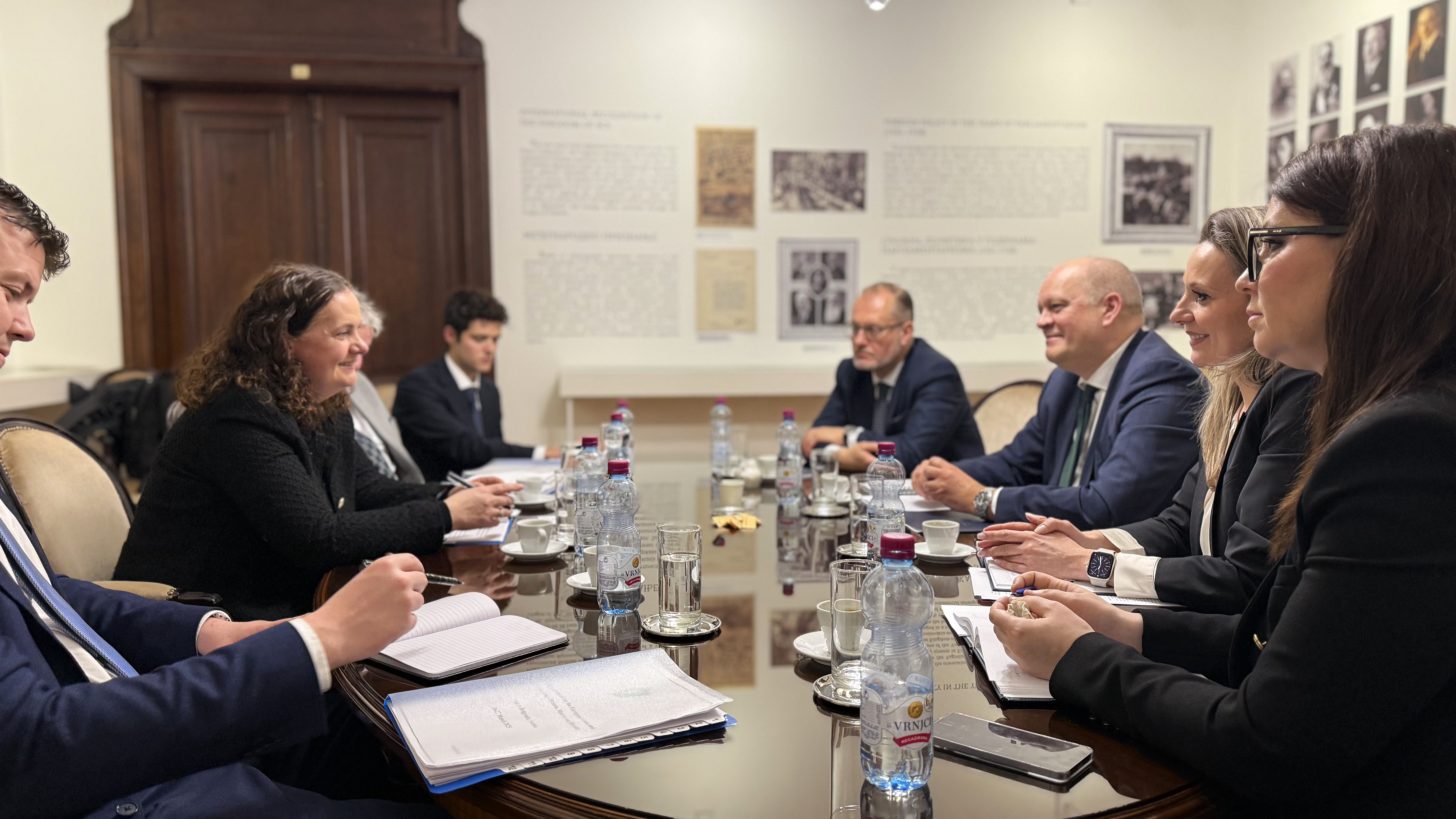 Delegaciju Ministarstva inostranih poslova Irske predvodila je generalna direktorka za Evropsku uniju i trgovinsku politiku, ambasador Mejv fon Hajnic, uz učešće ambasadora Irske i predstavnika Ambasade u Republici Srbiji.