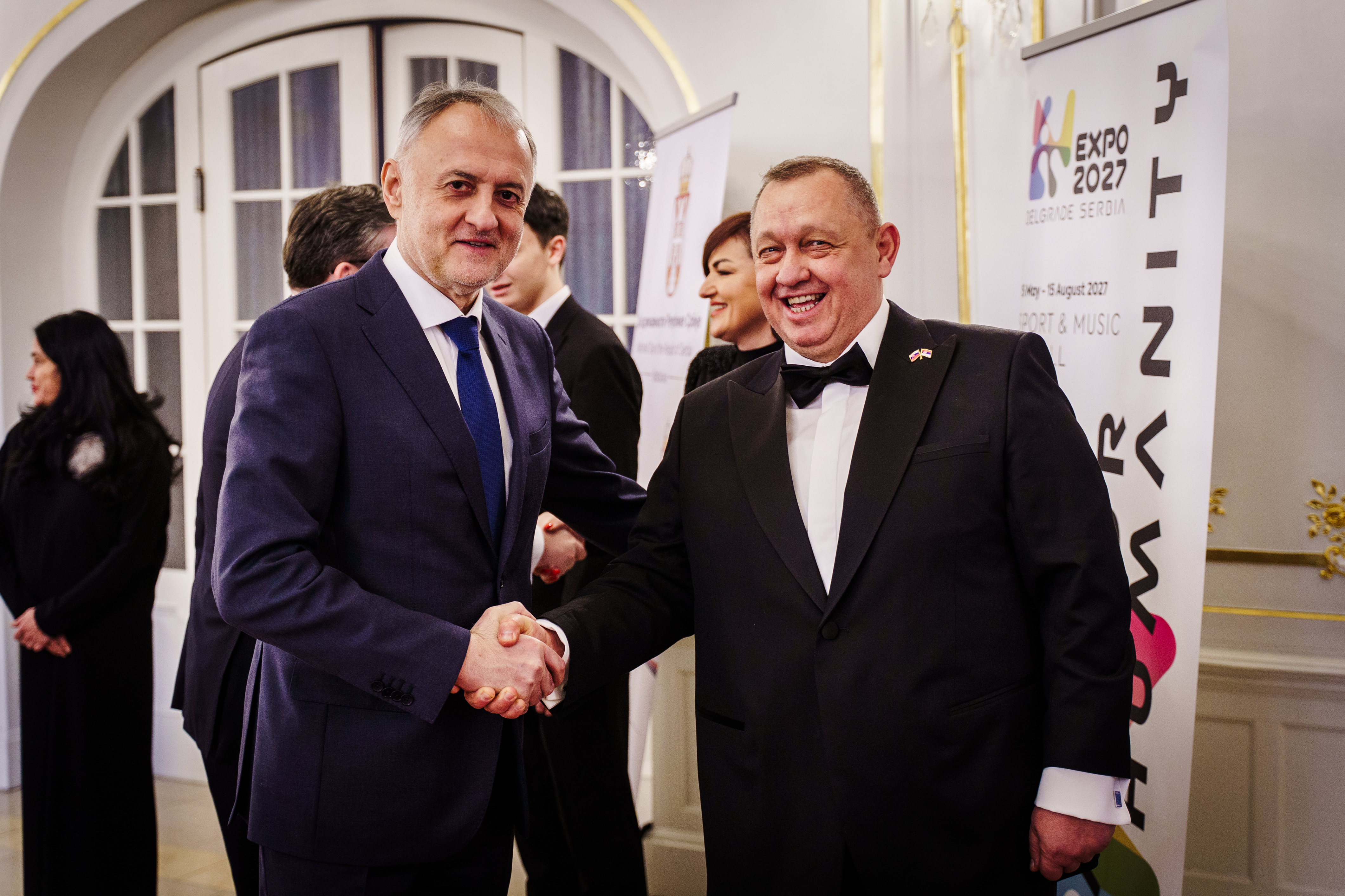 Пријему је присуствовала висока делегација Републике Србије, коју је предводио Милош Вучевић, изасланик председника Републике Србије Александра Вучића. У делегацији су били потпредседник Владе и министар унутрашњих послова Ивица Дачић, министарка заштите животне средине Сара Павков, министарка унутрашње и спољне трговине Јагода Лазаревић, министар правде Ненад Вујић, министар спорта Зоран Гајић и министар културе Никола Селаковић.