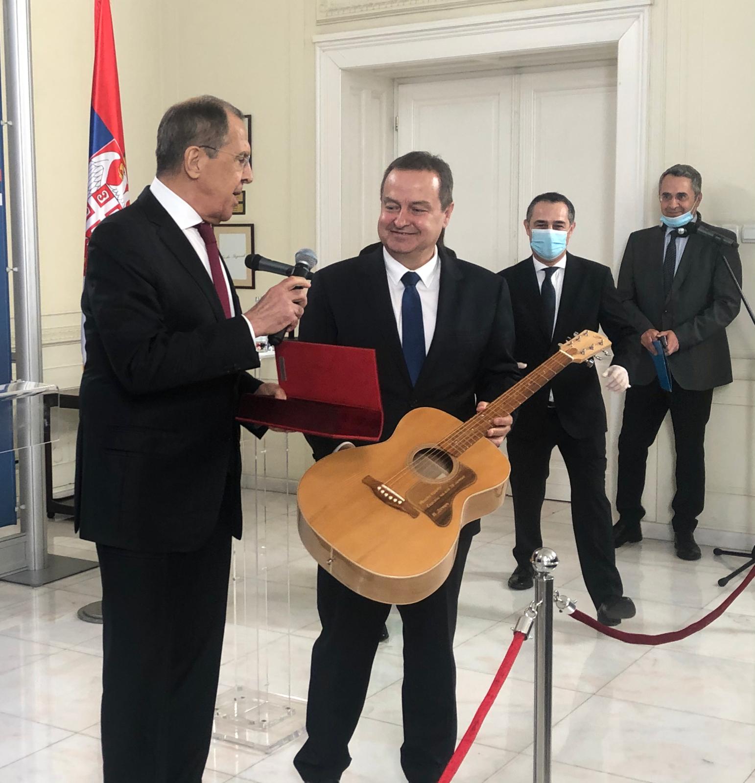 Лавров поклонио Дачићу микрофон, а од Дачића добио гитару