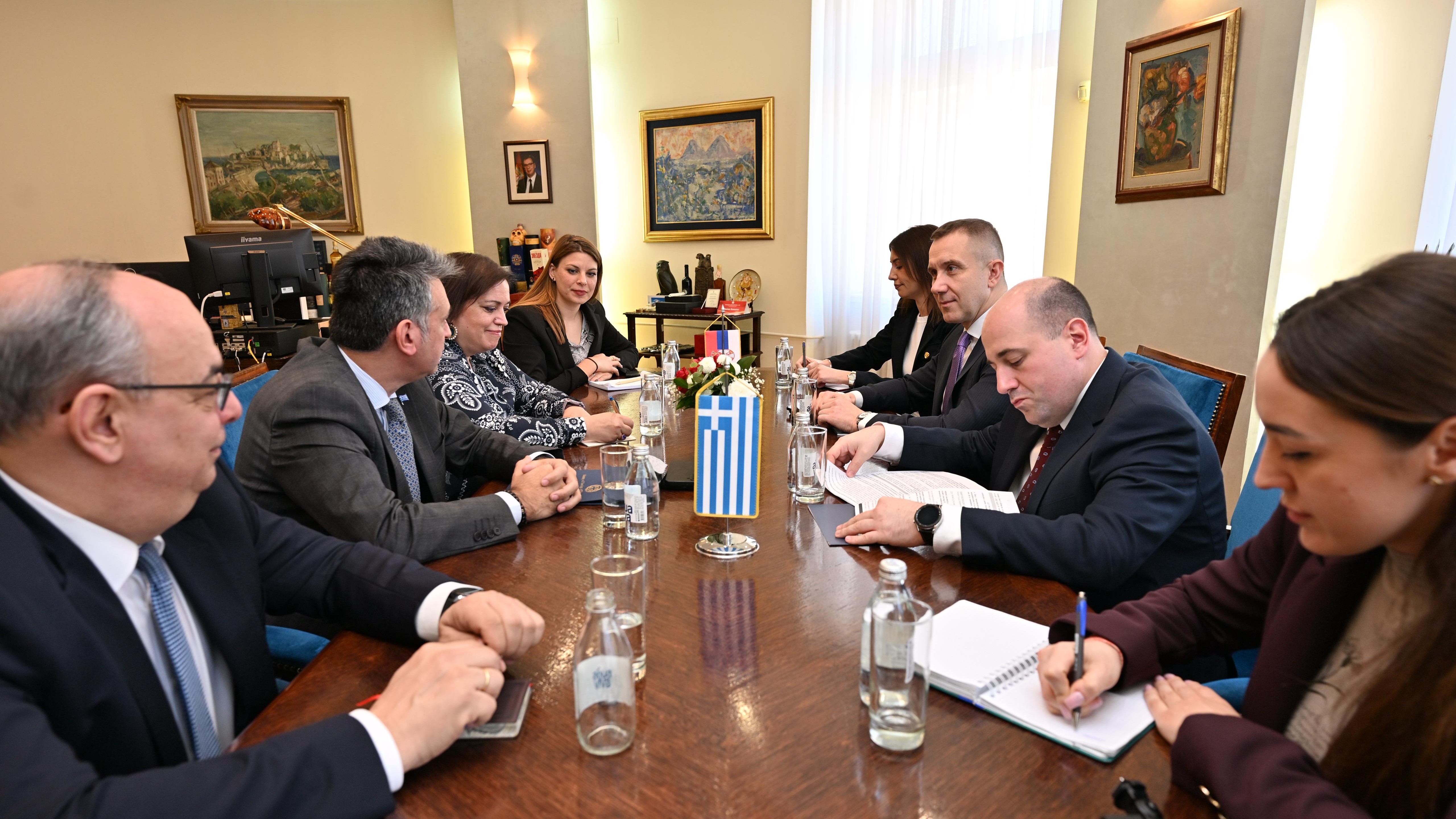 Састанку су присуствовали и амбасадорка Републике Грчке у Републици Србији Марија Леванди, шеф Одељења за економске и трговинске односе у Амбасади Грчке Адонис Катеподис, као и сарадница генералног секретара Олимпија Иконому.